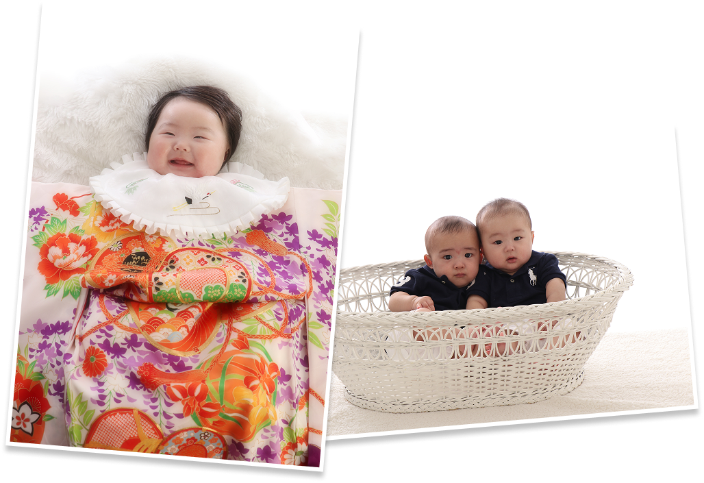 お宮参りやベビー撮影では、お祝いの気持ちを込めて、特別なひとときを写真に残します。